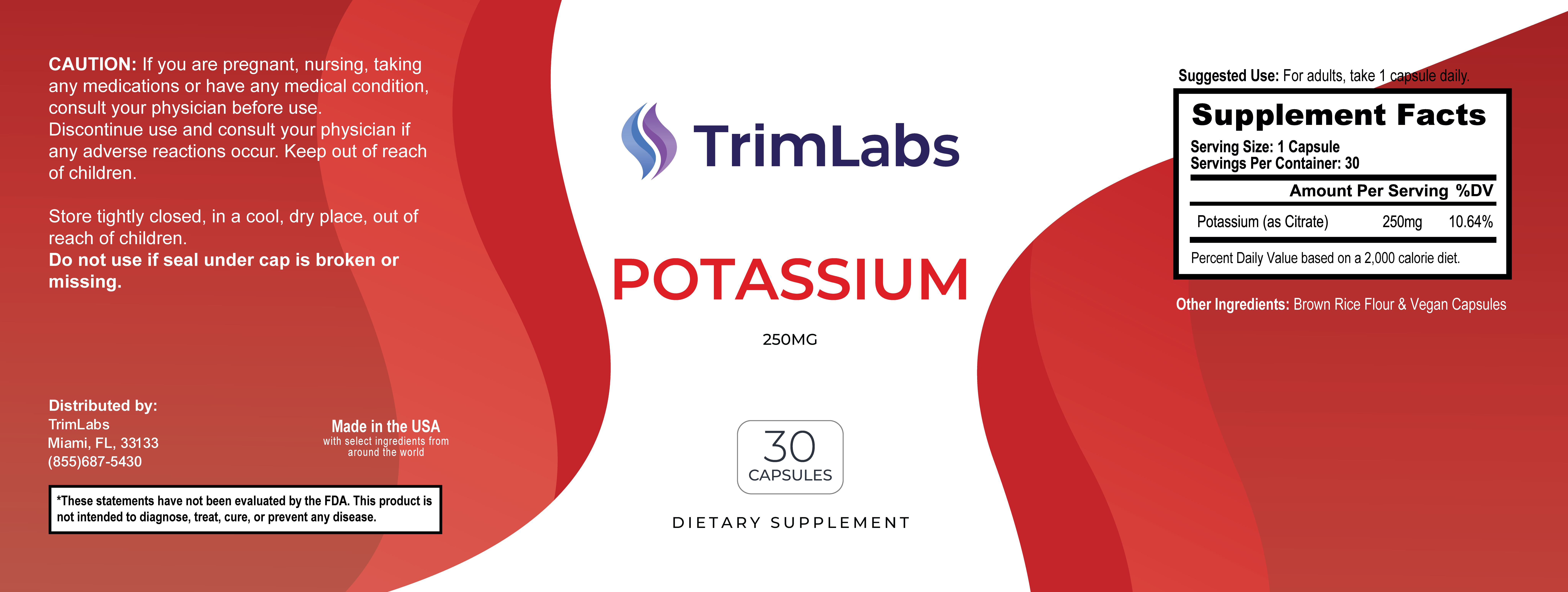 Potassium Capsules 30 Count provide 250 mg of potassium per capsule in a convenient dietary supplement. Potassium is an essential mineral that helps support hydration, muscle function, and overall balance. These capsules are designed to complement a healthy lifestyle, including proper nutrition and regular activity.